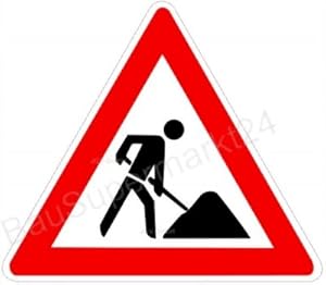 Verkehrsschild Baustelle: Das verkehrszeichen arbeitsstelle mit der vz 123 weist den verkehrsteilnehmer auf eine baustelle im weiteren fahrbahnverlauf hin.